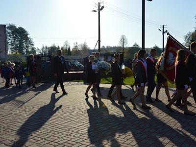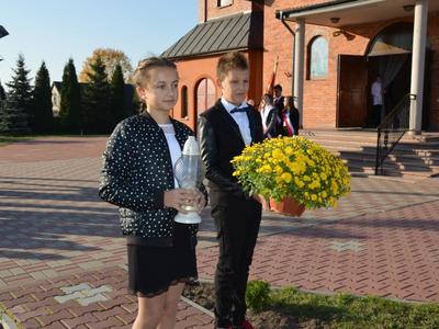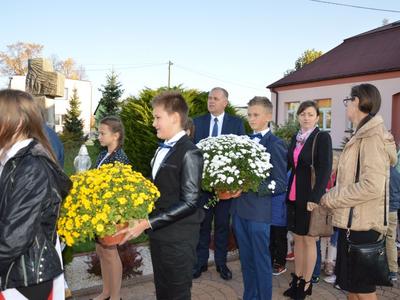 Po nabożeństwie dyrekcja, kadra pedagogiczna i uczniowie ze swoimi rodzicami przeszli do szkolnych murów, by tam wspólnie z zaproszonymi gośćmi uczestniczyć w uroczystościach Święta Patrona i ślubowania klasy pierwszej.