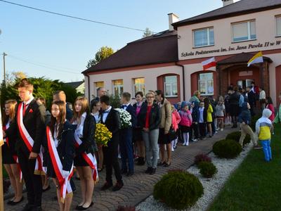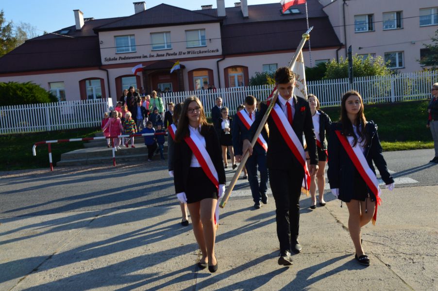 W dniu 16 października 2019 roku w Szkole Podstawowej im. św. Jana Pawła II w Wilczkowicach odbyła się niezwykle ważna podwójna uroczystość - pierwsza rocznica nadania placówce imienia i ślubowanie klasy pierwszej.