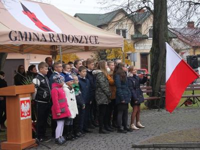11 listopada 2019 roku obchodziliśmy 101. Rocznicę Odzyskania przez Polskę Niepodległości. Uczniowie naszej szkoły wzięli udział w uroczystościach gminnych w Radoszycach. Ceremonia rozpoczęła się Mszą Świętą odprawioną w intencji Ojczyzny przez wikariusza ks. Damiana Czubaka w kościele pw. św. Apostołów Piotra i Pawła w Radoszycach, w której uczestniczyli kombatanci, mieszkańcy, pracownicy samorządu, strażacy, uczniowie, nauczyciele oraz harcerze. Po nabożeństwie wszyscy przeszli na kolejną część obchodów pod obelisk w centrum Radoszyc. Zgromadzonych przywitał prowadzący Radny Rady Miejskiej w Radoszycach Robert Nowak. Po wspólnym odśpiewaniu hymnu państwowego Burmistrz Miasta i Gminy Radoszyce Michał Pękala wygłosił okolicznościowe przemówienie, w którym odniósł się do wydarzeń sprzed lat. W dalszej części obchodów wystąpili uczniowie z naszej szkoły. Zaprezentowali wiersze i pieśni patriotyczne. Akademia rozpoczęła się od piosenki w wykonaniu absolwentki Julii Zbróg, następnie został zaprezentowany montaż słowno-muzyczny. Wzięli w nim udział uczniowie z klas: II, VI i VII. Część artystyczna wprowadziła zgromadzonych w nastrój zadumy, wzruszenia i refleksji. Na zakończenie uroczystości zostały złożone kwiaty przez oficjalne delegacje. Wieniec pod pomnikiem złożył także dyrektor naszej szkoły Zbigniew Kowalczyk w asyście uczniów, którzy postawili na płycie biało-czerwone znicze. Opiekunami dzieci były: Barbara Janus, Krystyna Kowalczyk, Wiesława Zbróg oraz Agnieszka Zielińska.