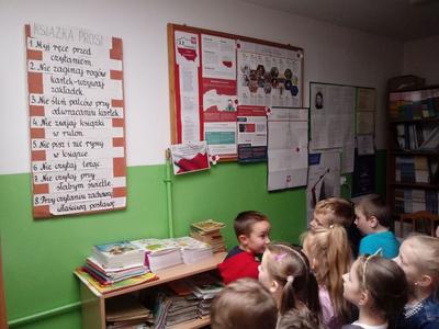 Już jako czytelnicy biblioteki szkolnej uczniowie samodzielnie wypożyczyli lektury, zostali poczęstowani słodyczami. Każde dziecko otrzymało pamiątkowy dyplom, który będzie mu przypominał o tym uroczystym wydarzeniu.