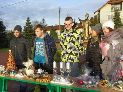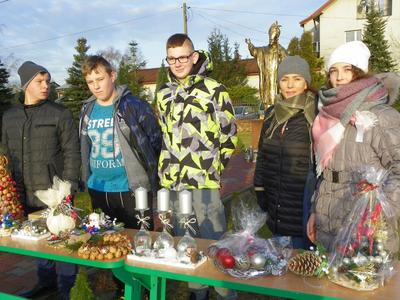 W dniu 8 grudnia 2019 r. przed kościołem w Wilczkowicach zorganizowany został kiermasz ozdób i kartek bożonarodzeniowych. Uczniowie i ich rodzice z zaangażowaniem wykonali piękne bombki, choinki, stroiki i kartki świąteczne, które nabyć mogli zainteresowani mieszkańcy. Dodatkowo uczniowie sprzedawali ozdoby podczas wieczoru "Kolęd i pastorałek" oraz Wigilii szkolnej. Dochód ze sprzedanych ozdób wyniósł 743,00 zł. Zebrana kwota została wpłacona na konto Rady Rodziców. Osobami odpowiedzialnymi za przeprowadzenie kiermaszu były Anna Samek i Wiesława Zbróg. Serdecznie dziękujemy wszystkim, którzy włączyli się w akcję oraz uczniom kl. VII i VIII za pomoc w sprzedaży świątecznych ozdób.