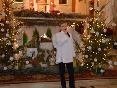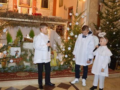 Tradycją stały się występy uczniów naszej szkoły, których ksiądz proboszcz Przemysław Ilnicki ponownie zaprosił do kościoła pw. św. Maksymiliana Kolbe i św. Faustyny Kowalskiej, aby zaprezentowali swoje aktorskie talenty. Przedstawienie jasełkowe, o którym mowa, zgromadziło liczne grono parafian oraz gości w święto św. Szczepana- 26 grudnia. Zebrani mogli obejrzeć historię okoliczności narodzenia Pana Jezusa. W przedstawieniu pojawili się: Maryja z Józefem, Trzej Królowie, archaniołowie, pastuszkowie. Ksiądz proboszcz uświetnił występ grą na gitarze, a schola śpiewaniem kolęd i pastorałek, w co wszyscy chętnie się włączyli. Na zakończenie ksiądz proboszcz oraz dyrektor szkoły Zbigniew Kowalczyk podziękowali za wspólne, udane spotkanie i kolędowanie.