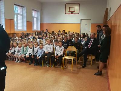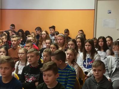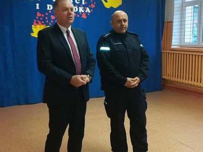 Spotkanie zorganizowała Joanna Ściegienna - pedagog szkolny. Na zakończenie prelekcji dzielnicowy życzył uczniom udanych i bezpiecznych ferii. Dyrektor szkoły Zbigniew Kowalczyk serdecznie podziękował za przybycie i udzielenie wskazówek.