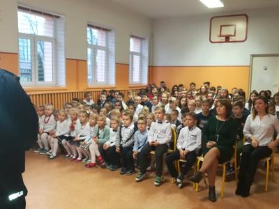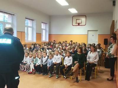W trosce o bezpieczeństwo naszych uczniów w czasie wolnym od zajęć dydaktycznych w dniu 22. 01. 2020 r. zorganizowano spotkanie profilaktyczno – edukacyjne na temat Bezpieczeństwo podczas ferii zimowych z policjantem asp. Sławomirem Marchewką. Wzięli w nim udział uczniowie klas 0-VIII.