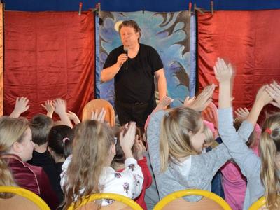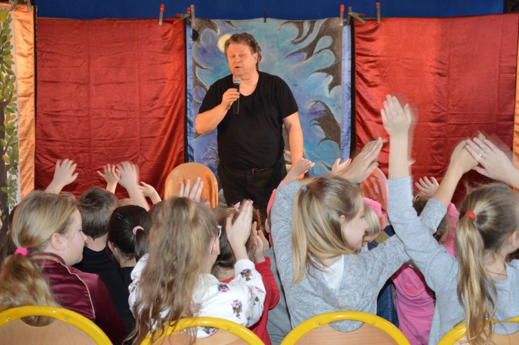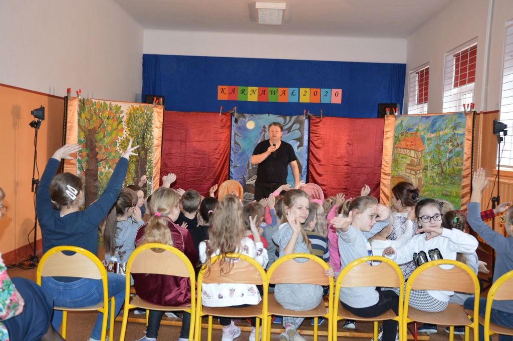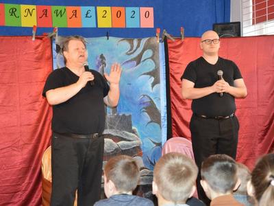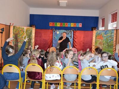 W dniu 26 lutego 2020 roku w Szkole Podstawowej im. św. Jana Pawła II w Wilczkowicach odbyły się spektakl profilaktyczno-edukacyjny dla uczniów klas 0-IV pt. Bajkowy Przekładaniec. Przeprowadzili go przedstawiciele Impresariatu Artystycznego TEART w Wieliczce – Teatr Małgo panowie: Bogdan Wąchała i Michał Nagielski.