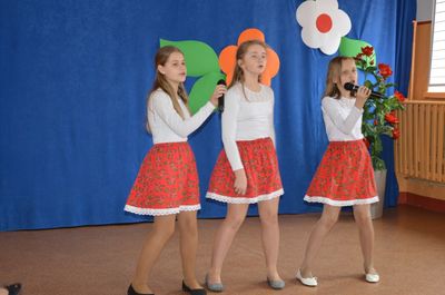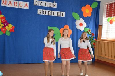 Dla uczczenia tego wyjątkowego czasu w roku, uczniowie przygotowali pod kierunkiem nauczycieli Andrzeja Kowalskiego i Krystyny Kowalczyk program artystyczny, w którym wierszem i piosenką umilili czas zebranym. Nie obyło się bez pokazu mody damskiej. Na zakończenie uroczystości dyrektor szkoły złożył wszystkim kobietom serdeczne życzenia, po czym panowie zaśpiewali 100 lat.