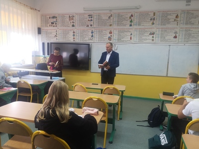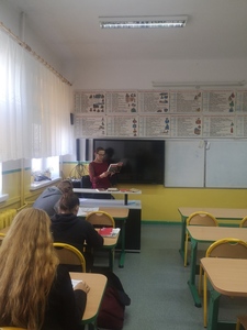 W dniu 04.09.2020 nauczyciele poloniści oraz uczniowie klasy 7 i 8 na lekcjach języka polskiego oraz zajęciach dodatkowych czytali fragmenty dramatu, który jest lekturą w klasie siódmej. Koordynatorem akcji jest p. Wiesława Zbróg – nauczyciel bibliotekarz.