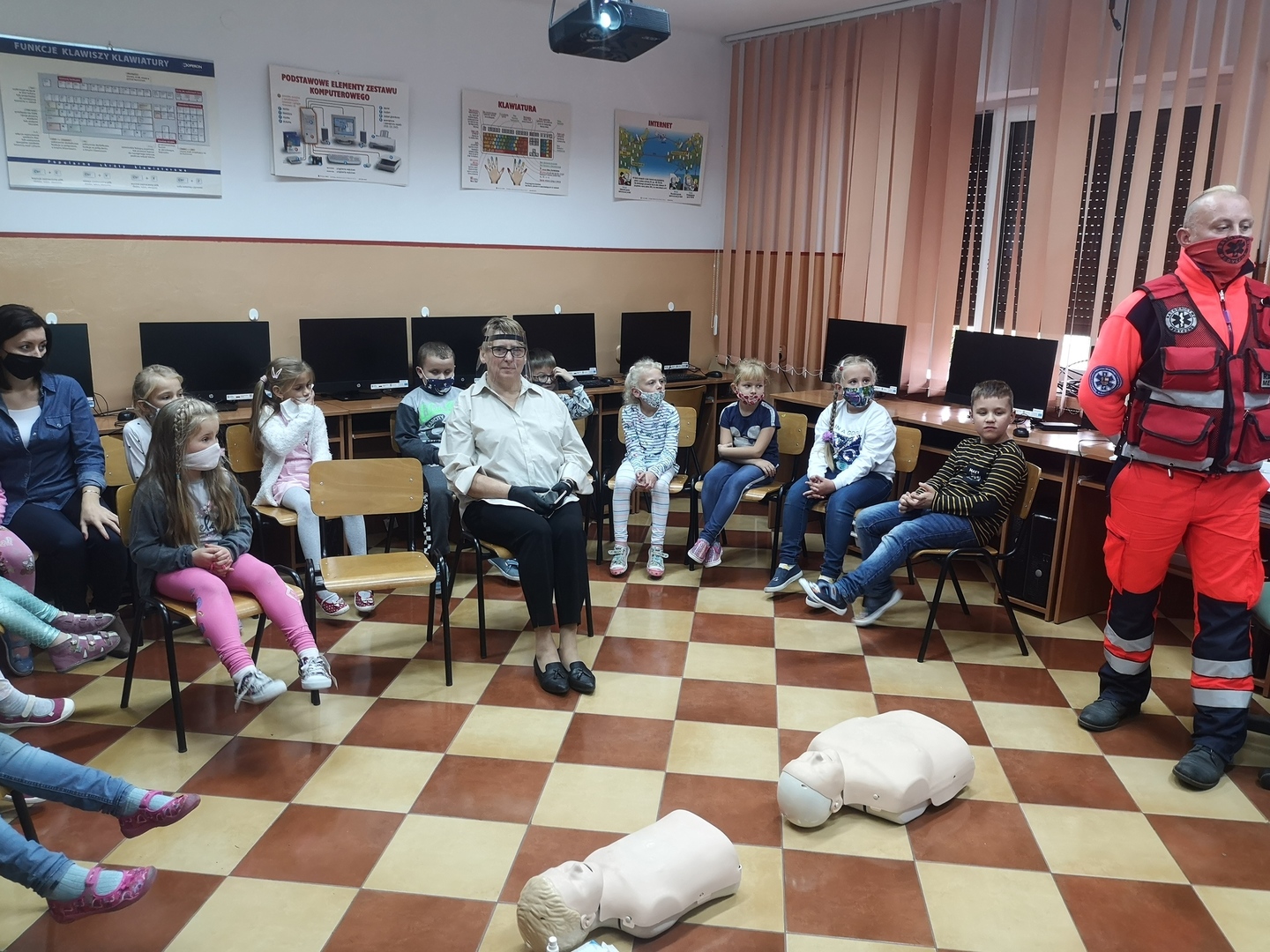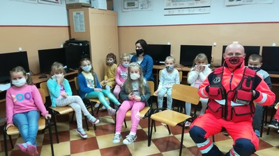 Uczniowie wysłuchali prelekcji dotyczącej bezpieczeństwa w szkole, domu, na placu zabaw z uwzględnieniem zaleceń w związku z COVID-19. Następnie wzięli udział w praktycznych zajęciach udzielania pierwszej pomocy z wykorzystaniem nowoczesnego systemu QCPR, który daje możliwość stałego korygowania błędów popełnianych w trakcie resuscytacji.
