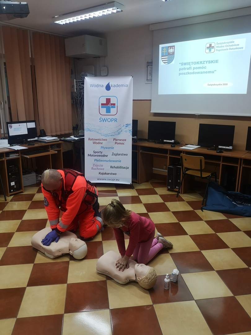 Z okazji Światowego Dnia Przywracania Czynności Serca odbyły się w naszej szkole warsztaty, które przeprowadził znany konecki ratownik p. Marcin Pytlos ze Świętokrzyskiego Centrum Ratownictwa Medycznego i Transportu Sanitarnego, Oddział Końskie. Szkolenie dla dzieci i młodzieży odbyło się w ramach projektu pod hasłem: „Wspieranie inicjatyw podnoszących wiedzę i umiejętności w zakresie pierwszej pomocy przedmedycznej: Świętokrzyskie potrafi pomóc poszkodowanemu” realizowanego przez Stowarzyszenie Świętokrzyskie Wodne Ochotnicze Pogotowie Ratunkowe przy wsparciu Urzędu Marszałkowskiego Województwa Świętokrzyskiego.