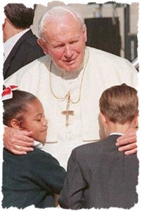 „(...) życzę, abyście doznały w sposób szczególny miłości waszych rodziców, waszych braci i sióstr i całej rodziny. Niech ta miłość, właśnie dzięki wam, drodzy chłopcy i dziewczęta, rozszerzy się na wasze otoczenia i na cały świat. Niech ta miłość dotrze do wszystkich, którzy jej szczególnie potrzebują: zwłaszcza do cierpiących i zapomnianych. Dziecko jest najpiękniejszym darem dla rodziny, dla narodu.”- św. Jana Paweł II, patron naszej szkoły.