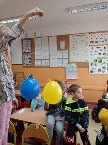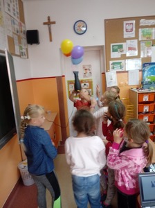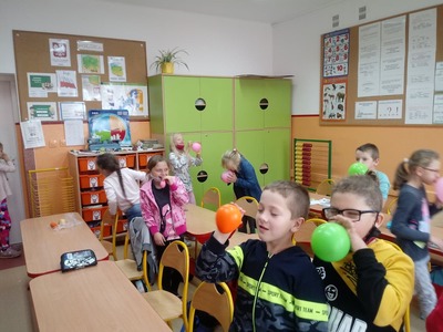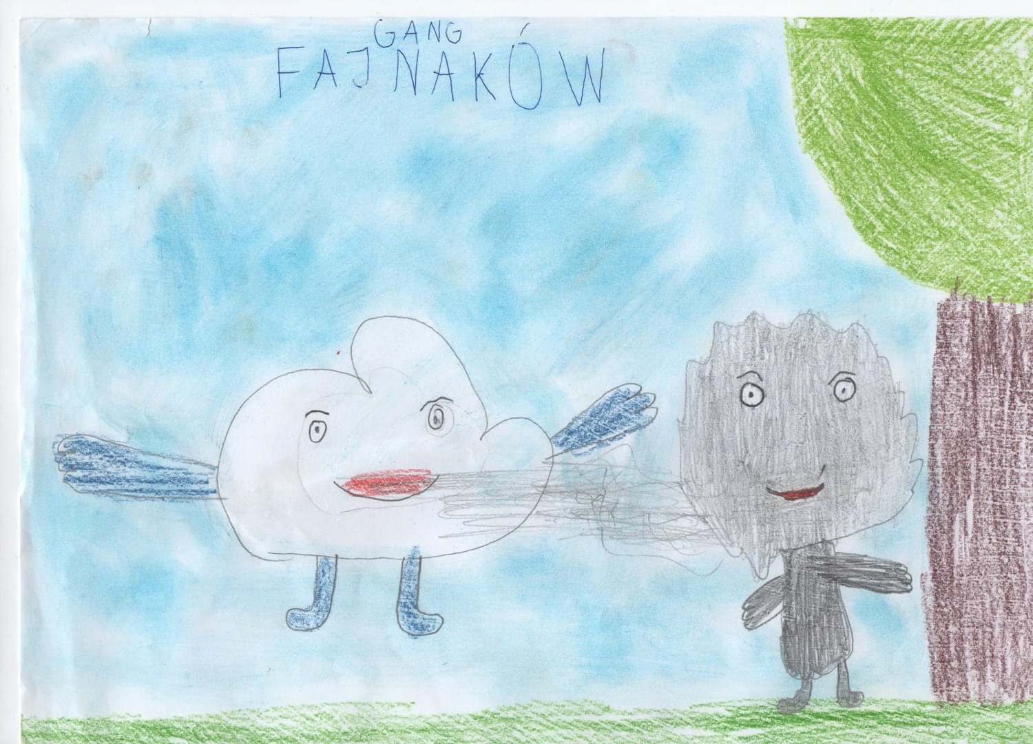 Uczniowie klasy I i II ze Szkoły Podstawowej im.św.Jana Pawła II w Wilczkowicach pod opieką wychowawców: Aliny Dymińskiej i Joanny Ściegiennej przystąpili do udziału w Ogólnopolskiej Akcji Edukacyjnej zorganizowanej przez sieć sklepów „Biedronka” pod hasłem: Szkolne Przygody Gangu Fajniaków, która miała pokazać dzieciom magię natury, ucząc wrażliwości ekologicznej i troski o środowisko każdego dnia. Uczniowie uczestniczyli w zajęciach lekcyjnych z wykorzystaniem książki Gang Fajniaków i miasto marzeń autorstwa Marcina Przewoźniaka. Zajęcia z Fajniakami miały przede wszystkim charakter praktyczny, tzn. uczniowie mieli pole do kreacji i eksperymentowania. Lekcje podzielone były na cztery filary tematyczne odpowiadające żywiołom natury, którym patronowały odpowiedni bohaterowie Gangu Fajniaków, czyli żywioły: ognia, wody, ziemi i powietrza. W naszej szkole realizowaliśmy z uczniami zajęcia z żywiołem POWIETRZE. Zanim jednak dzieci przystąpiły do wykonania prac plastycznych oraz zabaw w detektywów tropiących powietrze w czasie zajęć mogły wykazać się znajomością segregacji odpadów. Podczas sortowania udowodniły, że umieją wrzucać śmieci do właściwych koszy. Następnie analizowaliśmy treści ulotki i przeprowadziliśmy klasową dyskusję. Dzieci wykazały się ogromną wiedzą i wyciągały bardzo dobre i trafne wnioski. W dalszej części zajęć nauczycielki powiedziały, że są takie miejsca na ziemi, gdzie nie ma śmieci, jest czyste powietrze i wszyscy są szczęśliwi.Takie miejsce jest opisane w książce GANG FAJNIAKÓW I MIASTO MARZEŃ Marcina Przewoźniaka w rozdziale pt. Ekozakątek. Następnie zaczęły czytać opowiadanie, które w dalszej części kontynuowali chętni uczniowie. Dzieci z wielkim zaangażowaniem słuchały opowiadania. Po uważnym wysłuchaniu tekstu odpowiadali na pytania. Najbardziej wyczekiwanym momentem przez dzieci był cykl wykonywanych eksperymentów i zabaw. Dzieci pod okiem nauczycielek wykonywały eksperymenty i zabawy: z foliowym woreczkiem, z dmuchajką, zanurzanie słoika w wodzie, usiąść na powietrzu, dym świecy, wianuszek, powietrze ma swoją masę, armatka powietrzna. Tak się dzieciom spodobało eksperymentowanie, że końca nie było widać. Zajęcia cieszyły się wielkim zainteresowaniem, a podsumowaniem ich było wykonanie przez uczniów pracy plastycznej z żywiołem POWIETRZE.