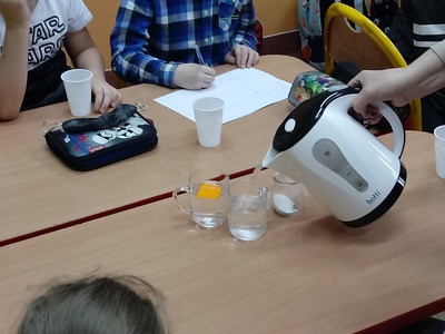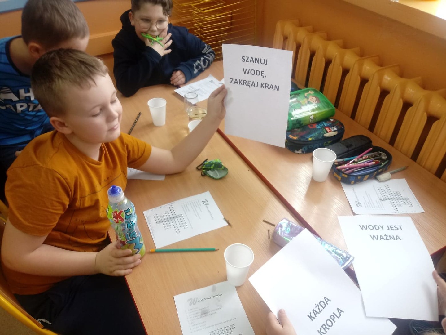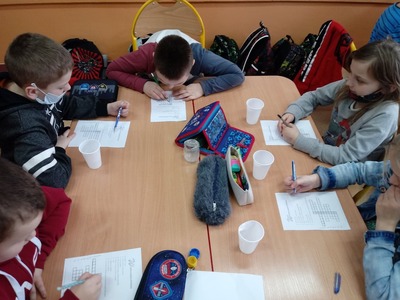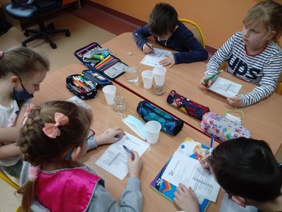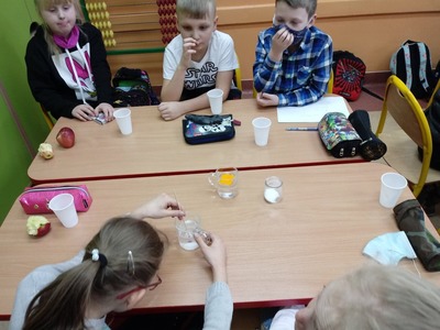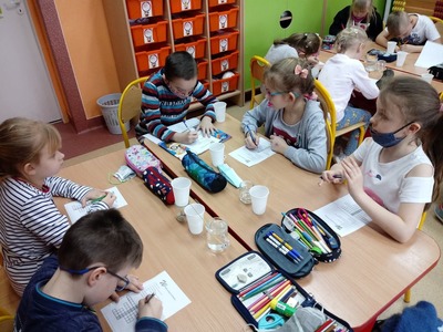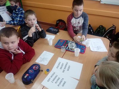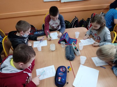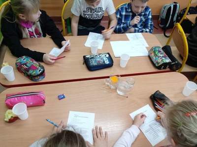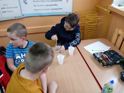 W czasie doświadczeń uczniowie obserwowali, a następnie wyciągali trafne i pouczające wnioski. Po przeprowadzonych doświadczeniach przyszedł czas na sprawdzenie zdobytych informacji dotyczących wody. W czasie rozwiązywania krzyżówki uczniowie mogli skorzystać ze swych notatek, które samodzielnie wykonali w trakcie zajęć. Zajęcia cieszyły się wielkim zaangażowaniem i zainteresowaniem uczniów, a podsumowaniem ich było wykonanie przez uczniów kropli wody, na której układali hasła, stwierdzenia dotyczące omawianego zagadnienia.