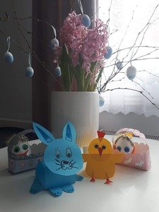 W tym roku czas poprzedzający Święta Wielkanocne zbiega się z rozprzestrzenianiem się w naszym kraju groźnego wirusa. Zaistniała sytuacja, ze względów bezpieczeństwa spowodowała konieczność zamknięcia wszystkich szkół. Jednak brak fizycznej obecności w szkole nie oznacza braku możliwości przygotowań do Wielkanocy. Dzieci z klasy pierwszej i drugiej podczas lekcji online wspólnie z wychowawcami: Panią Aliną Dymińską i Panią Joanną Ściegienną i pod okiem swych rodziców w domu mogą z powodzeniem wykonywać wielkanocne dekoracje i prace plastyczne. Własnoręcznie wykonane stroiki, baranki, zajączki, kurczaczki, pisanki, koszyczki z papieru, na szydełku, z masy solnej czy też z plasteliny będą doskonałą dekoracją świątecznego stołu, mieszkania oraz pokoju dziecka.