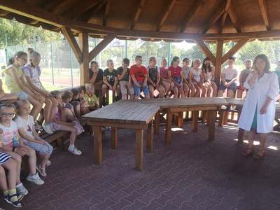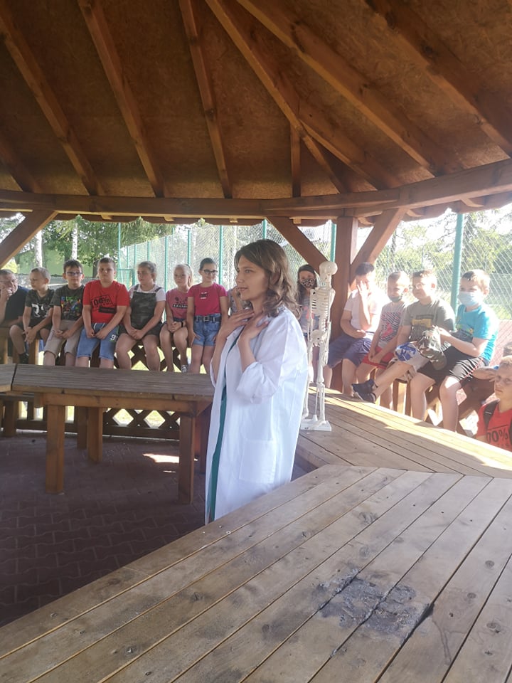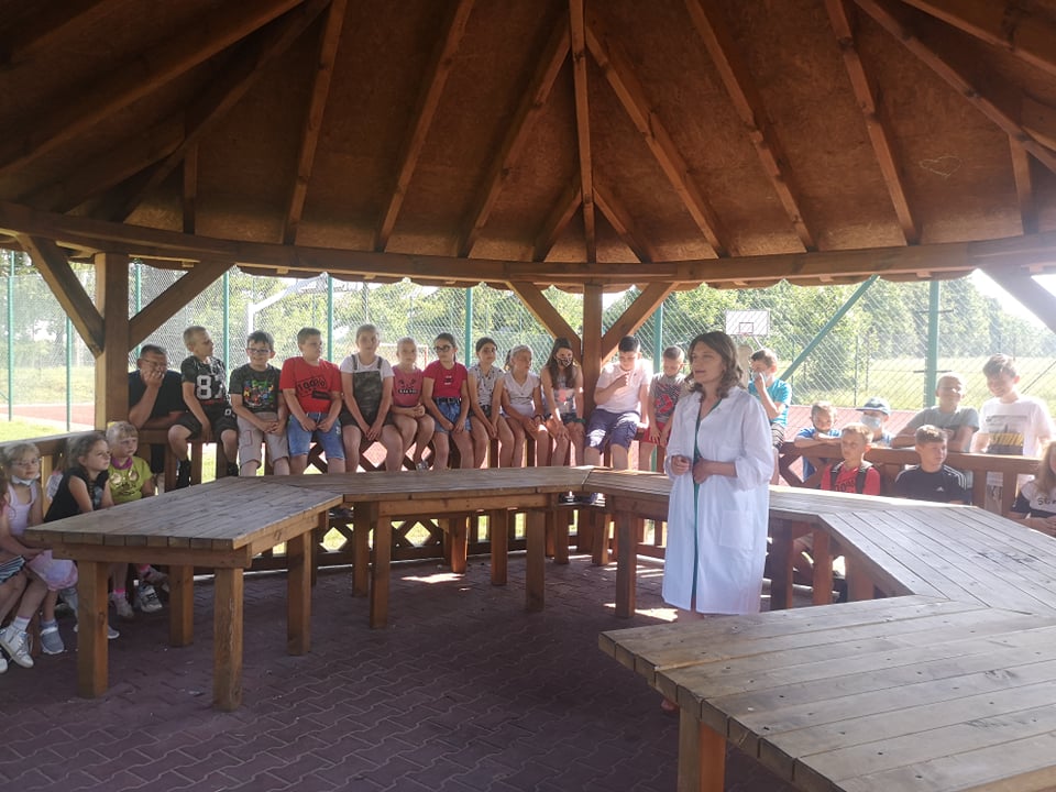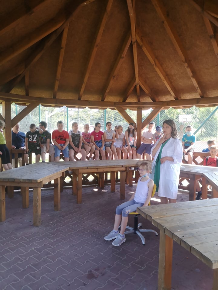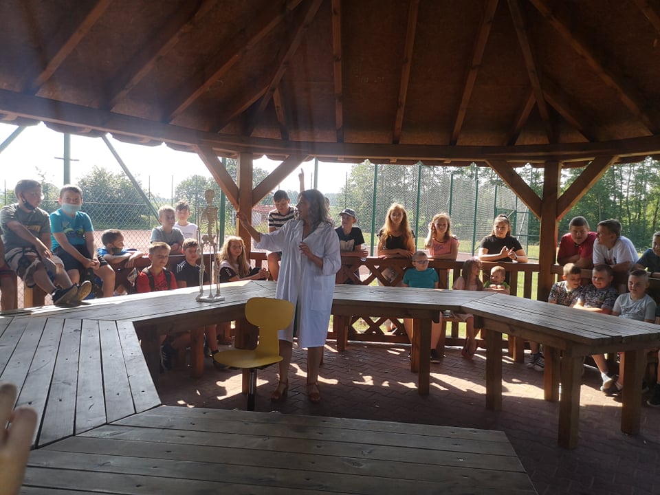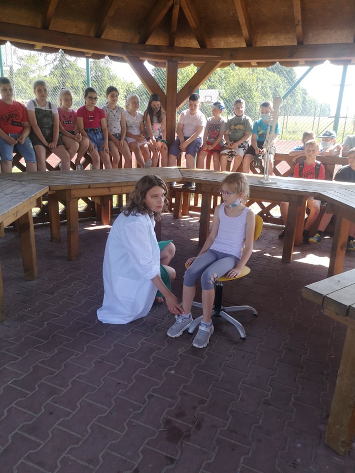 W dniu 17 czerwca 2021 roku uczniowie naszej szkoły uczestniczyli w spotkaniu z fizjoterapeutką, p. Anną Kasprzyk. Miało ono postać warsztatów pt.”Zdrowy kręgosłup”. Dzięki przeprowadzonym warsztatom, dzieci pozyskały praktyczną wiedzę odnośnie utrzymywania prawidłowej postawy ciała w siedzeniu, co w dobie nauki zdalnej jest ogromnie ważnym czynnikiem. Fizjoterapeutka zaznaczyła, że na wykształcenie się prawidłowej postawy ciała wpływają trzy istotne kwestie. Pierwszą z nich jest rozwój mięśni posturalnych wokół kręgosłupa (odpowiedzialnych za utrzymanie kręgosłupa we właściwym kształcie). Drugą istotną kwestią jest właściwa edukacja i profilaktyka w zakresie utrzymania prawidłowej postawy ciała w trakcie czynności dnia codziennego, takich jak siedzenie, stanie, chodzenie czy bieganie. Trzecim istotnym czynnikiem w procesie rozwoju dzieci jest jak największa ilość ruchu. Aktywne spędzanie czasu z rówieśnikami może zniwelować negatywne skutki statycznego obciążenie kręgosłupa, charakterystycznego dla siedzącego trybu życia. Fizjoterapeutka podkreśliła, że dzieci starają się przeciwdziałać pozostawaniu w długotrwałym bezruchu, dlatego podczas lekcji w szkole, nauki zdalnej, odrabiania prac domowych lub w trakcie innych, „statycznych” czynności rekompensują sobie siedzącą pozycję różnymi delikatnymi ruchami ciała (np. pochylaniem się czy kołysaniem). W pewnych sytuacjach ta naturalna ochrona zostaje jednak „wyłączona”. Dzieje się to wtedy, gdy dzieci skupiają się np. na tym, co wyświetla się na ekranie telewizora lub komputera. Pozostanie w bezruchu przez 5 czy 10 minut prowadzi do napięcia mięśni, a w efekcie – późniejszego bólu kręgosłupa.