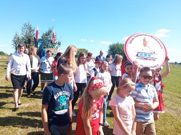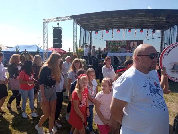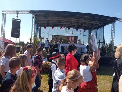 W sobotę 4 września 2021 odbyły się Gminne Dożynki nad zalewem w Radoszycach. Uroczystości rozpoczęły się od korowodu delegacji z poszczególnych miejscowości z wieńcami oraz uroczystej Mszy Świętej pod przewodnictwem biskupa radomskiego Henryka Tomasika. Po Mszy św. odbyły się występy uczniów z poszczególnych szkół. Naszą szkołę reprezentowali uczniowie z klas: V, VII, VIII przygotowani pod kierunkiem nauczycielki muzyki Krystyny Kowalczyk. Uczniowie przedstawili na scenie tańce oraz piosenki w pięknych ludowych strojach. Taniec ,,Trojak” zatańczyli Karina Molasy, Marta Wawrzeńczyk, Maksymilian Wawrzeńczyk, Barbara Kotras, Lena Maciążek, Piotr Wawrzos. Taniec disco zatańczyły Natalia Mazur, Paulina Dębska, Julia Filipowicz. Piosenki solo zostały zaprezentowane przez Patrycję Cel oraz Marcina Gębkę i Piotra Wawrzosa. Na zakończenie wystąpiły dziewczęta z klasy VIII w piosence ,,Uciekaj dziewczyno” , która rozbawiła całą zgromadzoną publiczność. Uczniowie zaprezentowali swoje umiejętności artystyczne w sposób profesjonalny. Dziękujemy rodzicom, którzy dołożyli wszelkich starań, aby dzieci przywieźć do Radoszyc oraz zadbali o piękne stroje.