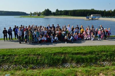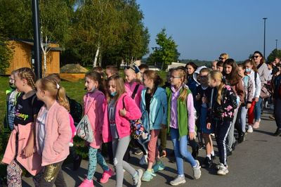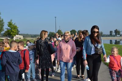 Najpierw wybraliśmy się na spacer wokół zalewu, w trakcie którego starsi uczniowie zachęcali wszystkich do śpiewania znanych, najnowszych piosenek. Ciesząc się wymarzoną na taki dzień pogodą wszyscy uczestnicy (nawet najmłodsi) dzielnie pokonali całą trasę. Po tak intensywnym wysiłku fizycznym dzieci mogły posilić się watą cukrową i popcornem oraz skorzystać z atrakcji takich jak bilard czy cymbergaj.