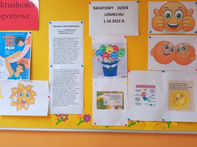 Światowy Dzień Uśmiechu nie ma stałej daty i obchodzony jest w pierwszy piątek października. Na pomysł tego święta wpadł artysta Harvey Ball, który w 1963 roku stworzył “smiley’a” – słynny znaczek uśmiechniętej buźki na żółtym tle. Jego dzieło stało się jednym z najbardziej rozpoznawalnych symboli dobrej woli i radości na świecie. W ten sposób wpadł na pomysł Światowego Dnia Uśmiechu, w czasie którego wszyscy powinni poświęcić większą uwagę uśmiechowi i dobrym uczynkom. Okazuje się też, że słynne słowa Śmiech to zdrowie mają pokrycie w badaniach naukowych. Otóż śmiech sprawi, że lepiej dotlenisz swój organizm, bo śmiejąc się nabierasz trzy razy więcej powietrza. Spontaniczny śmiech pozytywnie wpływa na samopoczucie, jest doskonałą gimnastyką dla mięśni twarzy, przepony, brzucha, ramion. Pogodne osoby łatwiej zjednują sobie ludzi. Są przyjaźnie nastawione do świata, wydają się sympatyczniejsze i… atrakcyjniejsze. W tym roku Światowy Dzień Uśmiechu przypadł 1 października. W naszej szkole akcja przeprowadzona została przez Samorząd Uczniowski pod kierunkiem opiekuna Barbary Burak. Uczniowie przygotowali gazetkę tematyczną z różnymi hasłami zachęcającymi do uśmiechu. Każdy uczeń i wszyscy pracownicy szkoły obdarowani zostali uśmiechniętymi buźkami na żółtym tle, które towarzyszyły nam do końca pobytu w szkole. Chcieliśmy, aby każdy zarażony uśmiechem kontynuował pozytywne zachowania jak najdłużej. Bo tam gdzie panuje życzliwość i zgoda, tam miło i bezpiecznie.