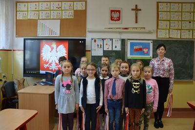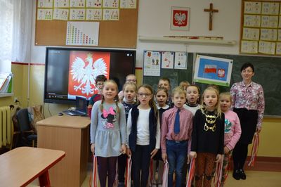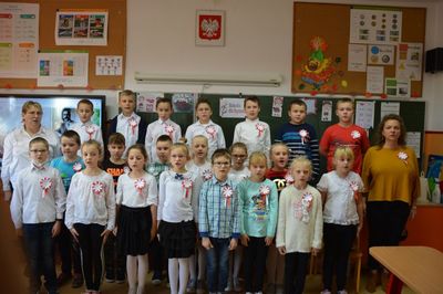 11 listopada to szczególna data dla każdego Polaka. Tego dnia czcimy bohaterstwo, waleczność i męstwo naszych przodków, dzięki którym Polska po 123 latach niewoli wróciła na mapę Europy. Wyrażamy radość z tego, że żyjemy w wolnym i suwerennym kraju. Już po raz czwarty uczniowie i nauczyciele naszej szkoły z okazji Narodowego Święta Niepodległości o symbolicznej godzinie 11:11 zaśpiewali „Mazurka Dąbrowskiego”. Jest to kontynuacja ubiegłorocznej inicjatywy „Rekord dla Niepodległej”, w której uczestniczyli uczniowie oraz nauczyciele z blisko 24 tys. placówek w kraju i za granicą. W ten sposób cała społeczność szkolna włączyła się we wspólne świętowanie kolejnej rocznicy odzyskania przez Polskę niepodległości.