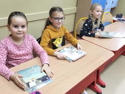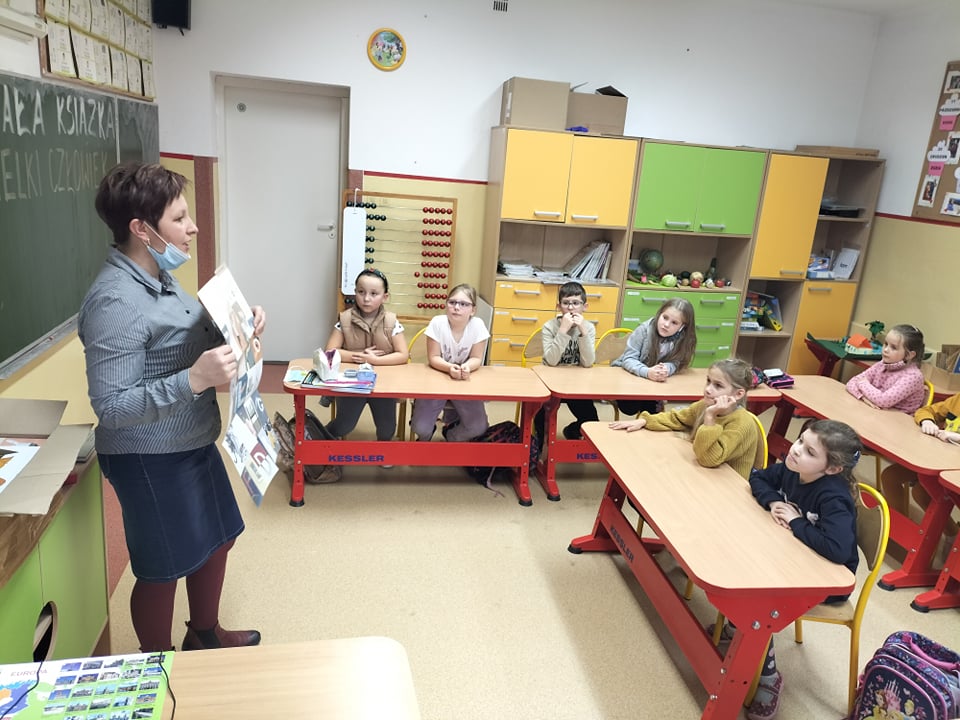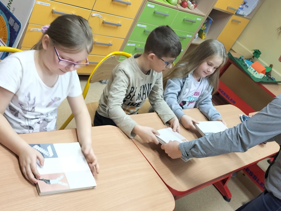 W dniu 22 listopada uczniowie klasy pierwszej w ramach ogólnopolskiego projektu Mała Książka – Wielki Człowiek otrzymali Wyprawkę dla Pierwszaka”. W jej skład weszły Pierwsze abecadło i Książką połączeni, czyli uczymy się czytać razem. Patronat nad przedsięwzięciem objęło Ministerstwo Kultury i Dziedzictwa Narodowego, a wyprawki przekazał Instytut Książki. Projekt został przygotowany z myślą o dzieciach rozpoczynających edukację w szkole podstawowej i stawiających swoje pierwsze kroki w nauce czytania. Za sprawą przygotowanej specjalnie dla nich książki pierwszaki odbędą niezwykłą przygodę, jaką jest umiejętność rozpoznawania liter, składania ich w wyrazy i zdania, a w końcu przyjemność czerpana z lektury – tej czytanej przy wsparciu najbliższych, jak i tej odkrywanej samodzielnie. Pani bibliotekarka przekazała młodym czytelnikom wspaniałą lekturę, życząc im satysfakcji ze wspólnej zabawy czytelniczej z najbliższymi. Pierwszaki były bardzo zadowolone z otrzymanych wyprawek.