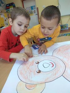 25 listopada tradycyjnie w oddziale przedszkolnym pamiętano o świętowaniu Światowego Dnia Pluszowego Misia. Mimo, że pojawiają się coraz ciekawsze, nowoczesne zabawki, to moda na misie nie przemija. Pluszak ten nigdy nie zostanie zdetronizowany. Wychowawczyni pani Joanna Staciwa przybliżyła dzieciom historię pluszowej maskotki, bohaterów literackich i filmowych, także z wykorzystaniem krótkiej prezentacji z Muzeum Zabawek w Kudowie- Zdroju. Zapoznała przedszkolaków z ciekawostkami o różnych gatunkach niedźwiedzi, ich trybie życia. Dzieci nuciły piosenkę „Miś ma w oczach”, chętnie wysłuchały książeczki Danuty Parlak „O misiu, który szukał przyjaciela” czytanej przez wychowawczynię. Na zajęciach matematycznych również zagościły liczmany miśki. Szacowano ich liczbę, a następnie sprawdzano wynik; układano określone rytmy, kolekcje, zbiory. Porządkowano według podanego kryterium. Nietrudno zgadnąć co było motywem zajęć plastycznych. Z przyjemnością przedszkolaczki kolorowały, wyklejały i malowały misie. Na finał dnia oglądano bajkę „Miś Uszatek”.