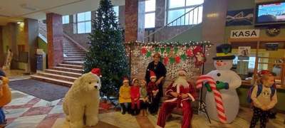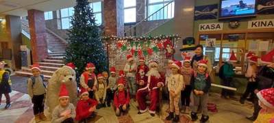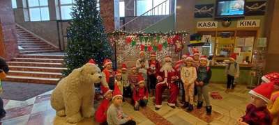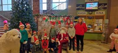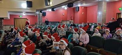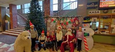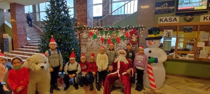 Najmłodsi uczniowie naszej szkoły wraz z wychowawcami: p. J. Staciwą, E. Pakułą, A. Dymińską oraz J. Ściegienną w dniu 6.12.2021 r. wybrali się na mikołajkowy seans filmowy. W ramach programu "Świętokrzyska Akademia Filmowa" już kolejny raz odwiedzili Wojewódzki Dom Kultury w Kielcach i znajdujące się tam kino "Fenomen". Miłą niespodzianką okazał się sam Mikołaj, który już na wejściu powitał dzieci z naszej szkoły i na specjalnie przygotowanej ściance można było sobie zrobić z nim zdjęcia. Zgodnie z tradycją podarował wszystkim drobne upominki- mikołajową czapkę oraz słodką zawieszkę na choinkę. Zafascynowane dzieci z niecierpliwością udały się na salę kinową, gdzie odbył się pokaz filmu pt. " Mikołaj w każdym z nas 2". Obraz ten okazał się bardzo ciekawy, a co najważniejsze- wprowadził widzów w magiczną atmosferę nadchodzących świąt Bożego Narodzenia!