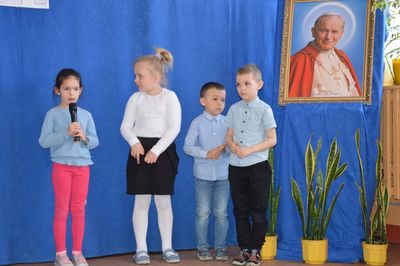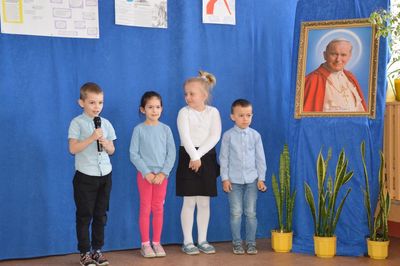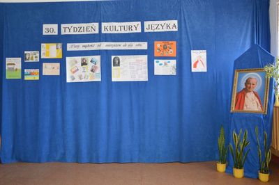 Konkurs Ortograficzny online dla rodziców Ortografia języka ojczystego bez tajemnic, zajęcia w klasach, projekcja filmów o wybitnych Polakach poprawności językowej, gry i zabawy językowe, quizy, pojedynek na rymowankę oraz zajęcia dla przedszkolaków, pani bibliotekarka czytała fragmenty książek, które opisują życie, np. św. Jana Pawła II, informowała, jak rozmawiać z innymi o autorytetach i okazywaniu im szacunku, nauczyciele świetlicy zapoznawali dzieci z tekstami o podobnej tematyce (dostosowanymi do ich wieku). Dzieci rozmawiały o tym, jak mówić do innych ludzi, aby szanowali wybitnych rodaków, uczyły się o nich pięknie mówić i szanować wrażliwość odbiorcy ich wypowiedzi.