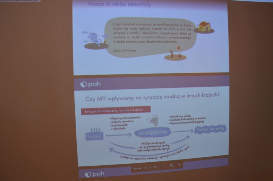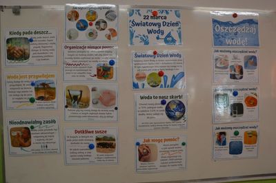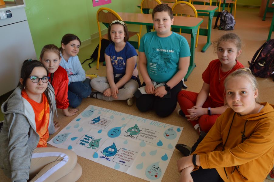 22 marca na świecie obchodzony jest Światowy Dzień Wody. W tym roku uczniowie naszej szkoły przyłączyli się do akcji organizowanej przez Polską Akcję Humanitarną (www.pah.org.pl) zajmującą się m.in. świadczeniem pomocy tam, gdzie brakuje wody pitnej. W dniu 23 marca uczniowie klasy IV wraz z wychowawczynią Wiesławą Zbróg wzięli udział w zajęciach w oparciu o scenariusze przygotowane przez PAH na temat dostępności wody oraz obejrzały animację pt. „Oszczędzanie wody to za mało”. W trakcie tych zajęć wszyscy dowiedzieli się, czym jest wirtualna woda, a także, że podczas trzyminutowego mycia zębów przy odkręconym kranie marnujemy aż 15l wody. Dzieci były zdziwione i zaniepokojone faktem, iż w XXI wieku ok. 785 mln. ludzi na świecie nie ma dostępu do czystej wody pitnej.