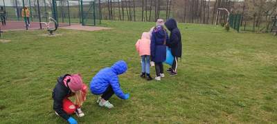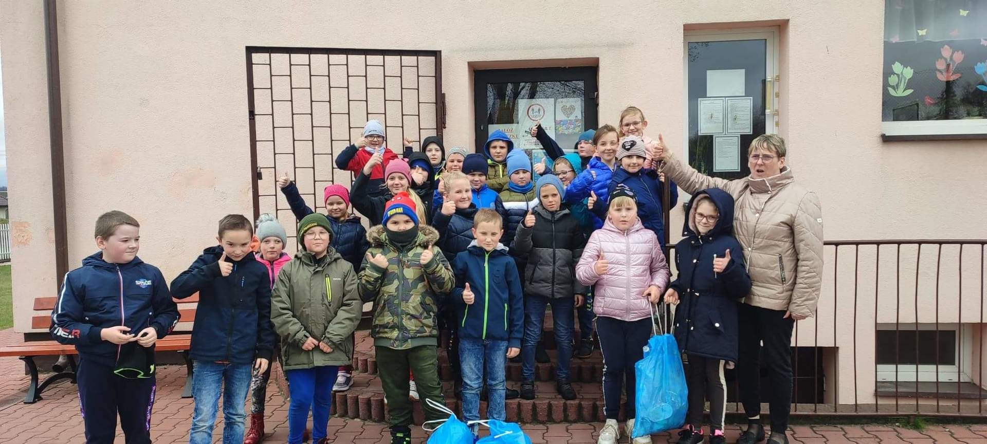 W dniu 22 kwietnia 2022 roku, a tym samym w Światowym Dniu Ziemi uczniowie oddziału przedszkolnego i klas I-III pod opieką wychowawców: p. Joanny Staciwy, p. Eweliny Pakuły, p. Aliny Dymińskiej i p. Joanny Ściegiennej włączyli się w akcję „Sprzątamy dla Polski”, której organizatorem było Stowarzyszenie „Dla Polski”, a patronat nad przedsięwzięciem objęli m. in. Prezes Rady Ministrów oraz Minister Edukacji i Nauki. Celem akcji była nie tylko troska o środowisko naturalne w swojej najbliżej okolicy, ale także kształtowanie postawy odpowiedzialności za wspólne dobro. Uczniowie wyposażeni w worki i rękawiczki jednorazowe posprzątali teren wokół szkoły i przydrożne rowy. Mimo pochmurnej pogody akcja przebiegła pomyślnie i sprawnie, a efekty pracy uczniów były bardzo dobre. Aktywny udział w tym przedsięwzięciu na pewno dał uczniom do zrozumienia, że należy dbać o swoje środowisko i najbliższe otoczenie.