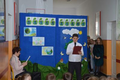W piątek 22 kwietnia obchodziliśmy Dzień Ziemi, największe międzynarodowe święto ekologiczne. Tegoroczna edycja odbywa się pod hasłem „Zainwestuj w naszą planetę”. Z tej też okazji w dniu 25 kwietnia odbyła się akademia poświęcona tematyce ekologicznej. Uczniowie klasy IV pod opieką p. Wiesławy Zbróg zaprezentowali się w części artystycznej, której celem było motywowanie innych do dbania o naszą planetę i pokazanie, że nawet najmniejsze zmiany w życiu codziennym mogą pozytywnie wpłynąć na poprawę stanu naszego środowiska. Dbanie o planetę musi stać się naszym naturalnym nawykiem, jak picie wody. Naszą powinnością powinno być promowanie ochrony środowiska, ale nie tylko w tym szczególnym dniu, lecz przez cały rok. Do poprawy stanu naszej planety nie potrzeba wiele wysiłku, czasami wystarczy zmienić kilka przyzwyczajeń.