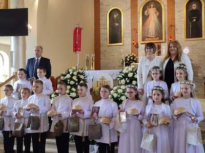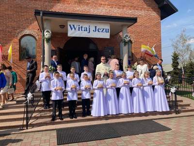 W niedzielę 1 maja 2022r. o godz. 10.00 odbyła się Pierwsza Komunia Święta dzieci z kl. III w kościele pw. św. Maksymiliana Marii Kolbe w Wilczkowicach. Sakrament przyjęło 15 uczniów (w tym 9 chłopców i 6 dziewczynek). Uroczystość rozpoczęła się przed kościołem błogosławieństwem dzieci przez rodziców. Mszy św. przewodniczył i komunii świętej udzielił dzieciom proboszcz, ks. Przemysław Ilnicki. Podczas Mszy św. dzieci niosły dary ołtarza: świecę, Hostię, ampułki z wodą i winem, chleb, kwiaty, dar od rodziców. Wszystkie dzieci ubrane były w piękne stroje komunijne. W świątyni panował pełen wzruszenia i radości nastrój. Wszyscy uczestnicy Mszy św. mieli okazję wysłuchać przygotowanych wierszy i pieśni w wykonaniu naszych dzieci.