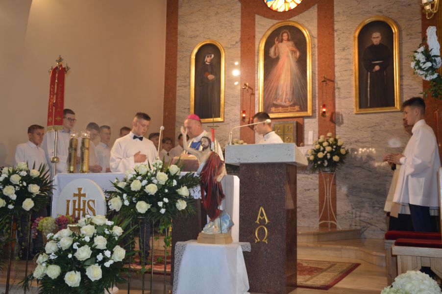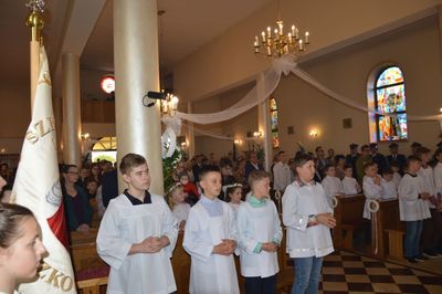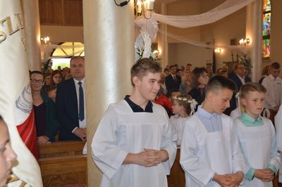 W dniu 02. 05 Poczet Sztandarowy Szkoły Podstawowej im. św. Jana Pawła II w Wilczkowicach wraz z panem dyrektorem Zbigniewem Kowalczykiem uczestniczył o godzinie 17.00 w uroczystej Mszy Świętej z dziećmi komunijnymi i nabożeństwem majowym w ramach wizytacji kanonicznej. Eucharystię celebrował Ordynariusz naszej Diecezji – ks. bp Marek Solarczyk.