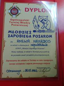 W turnieju zajęliśmy 10 miejsce w województwie świętokrzyskim, co jest ogromnym osiągnięciem zwłaszcza dla uczennicy (dziewczyny), która mniej może znać się na przepisach, urządzeniach, zabezpieczeniach przeciwpożarowych czy samochodach pożarniczych w porównaniu do chłopców, którzy naturalnie bardziej interesują się sprawami związanymi ze strażą pożarną.