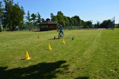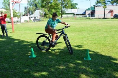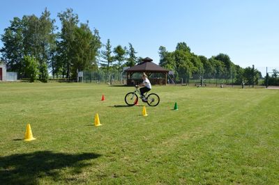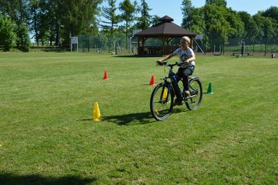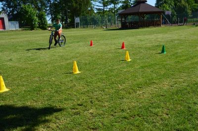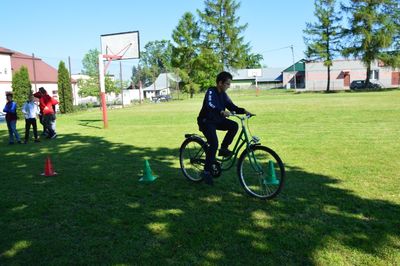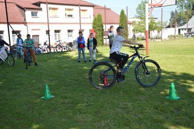 W dniu 3 czerwca 2022r. uczniowie klas IV i VI zdawali praktyczny egzamin na kartę rowerową. Przed przystąpieniem do egzaminu praktycznego wszyscy uczniowie pozytywnie zdali egzamin teoretyczny. Pytania w części teoretycznej dotyczyły: ogólnej znajomości przepisów ruchu drogowego, znajomości znaków drogowych i zasad ruchu drogowego obowiązujących pieszych i rowerzystów, zasad przejazdu przez skrzyżowania, udzielania pierwszej pomocy medycznej.