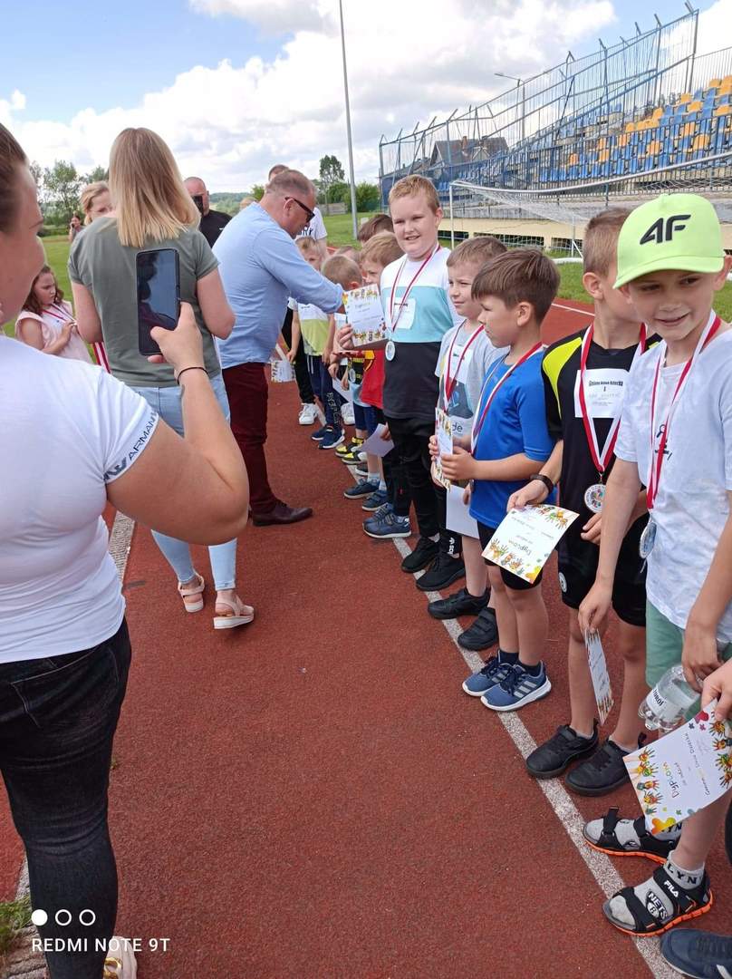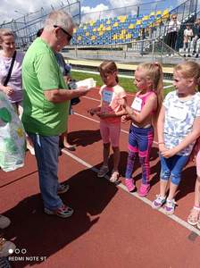 W sobotę, 11 czerwca na stadionie „ Partyzant” w Radoszycach odbył się Gminny Dzień Dziecka. Dla dzieci przygotowano wiele atrakcji. Dużym zainteresowaniem cieszyły się turnieje sportowe, głównie konkurencje biegowe w kilku kategoriach, w których brali udział uczniowie z naszej szkoły. Rywalizacji nie zabrakło również podczas innych konkursów tj. jedzenia pianek, rzutu obręczami do celu i wyścigu z piłeczkami. Pamiątkowe dyplomy oraz medale i upominki dla najlepszych wręczyli Burmistrz Miasta i Gminy Radoszyce Michał Pękala, Przewodniczący Rady Miejskiej w Radoszycach Marian Jankowski, Sekretarz Agnieszka Pikuła, Kierownik Centrum Usług Wspólnych Ewelina Ptak. Dzieci miały do dyspozycji ogromną zjeżdżalnię , dmuchany plac zabaw oraz basen z piłeczkami. Nie zabrakło także waty cukrowej i popcornu oraz słodkości od Królewny Śnieżki. Przez cały czas trwania festynu, gry i zabawy dla dzieci prowadzili animatorzy ATHLETIC GYM. W pakiecie atrakcji było również malowanie twarzy, włosów, zaplatanie warkoczyków i wiele innych. Wierzymy, że ten dzień pozostanie w pamięci na długo.