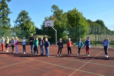 W dniu 7.09.2022r. w Szkole Podstawowej im. św. Jana Pawła II w Wilczkowicach odbył się coroczny Szkolny Dzień Integracji. Głównym celem działań było ograniczenie wśród młodzieży przemocy i agresji, podniesienie poziomu kultury osobistej, przestrzeganie uczniów przed zagrożeniami związanymi z zachowaniami ryzykownymi. Nadrzędnym celem była integracja wszystkich dzieci, zwłaszcza tych najmłodszych. Dzień ten stał się też doskonałą okazją do uroczystego powitania dzieci z oddziału przedszkolnego. Dyrektor szkoły dr Zbigniew Kowalczyk w serdecznych słowach przyjął w poczet szkolnej społeczności najmłodszych uczniów życząc im, aby każdy dzień był wspaniałą przygodą i niósł ze sobą wiele cudownych i pozytywnych doświadczeń. Tego dnia, wszystkie dzieci mogły wziąć udział w zabawach przygotowanych przez animatorów Athletic Gym. Dużym zainteresowaniem cieszyły się gry sportowe np. rzut obręczami do celu, berek kucany, wyścig z piłeczkami i wiele innych. Dodatkową zachętą do udziału w konkursach była możliwość wygrania ciekawych nagród. Czynności te miały na celu rozwijanie u dzieci zdrowej rywalizacji w duchu fair play. Wszyscy uczniowie mieli również do dyspozycji dmuchaną zjeżdżalnię, basen z piłeczkami oraz dmuchany plac zabaw. Animatorzy zadbali o to, aby każdy znalazł w tym dniu coś dla siebie. Dziewczynki mogły skorzystać z okazji i pomalować swoje buzie oraz ozdobić włosy kolorowymi warkoczykami. Chłopcy najczęściej ustawiali się w kolejce po zmywalny tatuaż. Dużym zainteresowaniem cieszyły się ulubione przekąski dzieci, czyli popcorn i wata cukrowa. Doskonała pogoda sprzyjała świetnej zabawie. Wierzymy, że takie zajęcia na pewno poprawią wzajemne relacje rówieśnicze i nauczą dzieci pracy w grupie. Wspólnie spędzony czas dostarczył wszystkim wielu wrażeń. Mamy nadzieję , że pozostanie on w pamięci na długo.