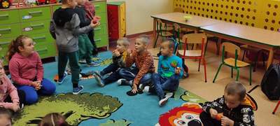 Nie zabrakło też zabaw ruchowych, które dowiodły, że jabłko oprócz swoich cennych walorów smakowych może posłużyć jako inspiracja do wielu konkursów. Po zabawach najbardziej oczekiwanym punktem był jabłkowy poczęstunek.