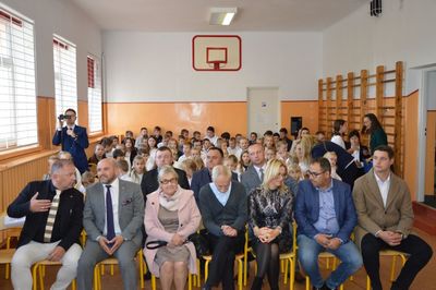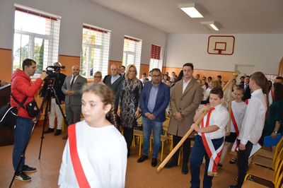 W tym ważnym dla całej społeczności szkolnej i lokalnej dniu, swoją obecnością zaszczycili nas znamienici goście: p. Mariusz Gosek – poseł na Sejm RP, p. Michał Pękala - Burmistrza Miasta i Gminy Radoszyce, p. Robert Nowak – Przewodniczący Rady Miasta i Gminy Radoszyce, p. Wiesława Król – radna Miasta i Gminy Radoszyce reprezentująca także w tym dniu p. Agatę Wojtyszek – Posłankę na Sejm RP, p. Ewelina Ptak – Kierownik Centrum Usług Wspólnych w Radoszycach, p. Mahmoud Othman - właściciel firmy wykonującej inwestycję, p. Jacek Olesiński – sołtys Wilczkowic, p. Zofia Kuterska – sołtys Lewoszowa, p. Krzysztof Jarząb - sołtys Nadworowa, przedstawiciele Rady Rodziców: p. Dawid Zbróg i p. Magdalena Charazińska oraz media lokalne. Po wprowadzeniu Sztandaru Szkoły i uroczystym odśpiewaniu Hymnu Szkoły głos zabrał p. Zbigniew Kowalczyk – Dyrektor Szkoły Podstawowej im. św. Jana Pawła II w Wilczkowicach. W swoim wystąpieniu Pan Dyrektor podkreślił, że uroczystość ma charakter wyjątkowy. Jak zaznaczył, wreszcie spełni się marzenie całej społeczności szkolnej i lokalnej: