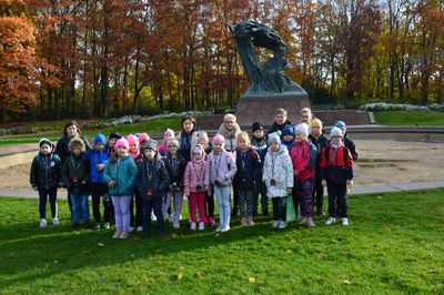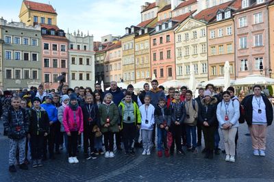 W dniu 21.10.2022r. uczniowie klas I – III oraz IV, V, VII i VIII Szkoły Podstawowej im. św. Jana Pawła w Wilczkowicach wraz z opiekunami, uczestniczyli w wycieczce do Warszawy, współfinansowanej przez Ministerstwo Edukacji Narodowej w ramach programu „Poznaj Polskę”. Wyruszyliśmy o 5.00 rano w piątek wiedząc, że czeka nas długa podróż i intensywny program zwiedzania. Warszawa przywitała nas piękną, jesienną aurą. Nasze zwiedzanie rozpoczęliśmy od odwiedzenia Łazienek Królewskich, czyli zespołu pałacowo - ogrodowego założonego w XVIII wieku przez Stanisława Augusta Poniatowskiego. Przebywając na świeżym powietrzu mogliśmy dowiedzieć się wielu interesujących informacji na temat dziejów Polski i zagłębić się w historyczne wydarzenia, co było bardzo przyjemnym urozmaiceniem przyswajania wiedzy. Podczas spaceru podziwialiśmy budynki, pawilony, rzeźby i ogrody. Wysłuchaliśmy opowieści historycznych i anegdot związanych z tym miejscem. Dowiedzieliśmy się, że Park Łazienki Królewskie jest jednym z najchętniej odwiedzanych parków w Warszawie. Pięknie prezentuje się o każdej porze roku. Park jest jednym z ulubionych miejsc warszawiaków na spacery, a młodych par na sesje ślubne. Łazienki Królewskie słyną również z Pałacu na Wyspie, czyli letniej rezydencji króla Stanisława Augusta Poniatowskiego. Zwiedzanie tego miejsca zakończyliśmy wspólnym zdjęciem przy Pomniku Fryderyka Chopina, gdzie w sezonie letnim odbywają się koncerty muzyki chopinowskiej. Kolejnym punktem pobytu w stolicy była wizyta na Starym Mieście, gdzie uczniowie mieli okazję zobaczyć 22 metrową Kolumnę Zygmunta III Wazy, o której uczyli się dotychczas jedynie z podręczników historii. Dzieci dowiedziały się, że to temu królowi zawdzięczamy przeniesienie stolicy z Krakowa. Był to on też pierwszym władcą, który zamieszkał na stałe ze swoim dworem w Warszawie. Spacerowaliśmy też po Krakowskim Przedmieściu, które jest częścią tzw. Traktu Królewskiego biegnącego od Zamku Królewskiego, aż do rezydencji w Wilanowie, a uznawane jest za najpiękniejszą ulicę stolicy. W trakcie zwiedzania zobaczyliśmy wszystko to, co na Krakowskim Przedmieściu najpiękniejsze i najciekawsze: dwa wyjątkowe kościoły – św. Krzyża i św. Anny, których skomplikowana i bolesna historia jest odzwierciedleniem dziejów Polski i Warszawy oraz okazały pomnik Adama Mickiewicza, naszego wieszcza narodowego.
