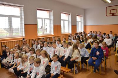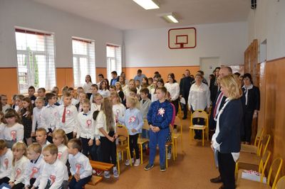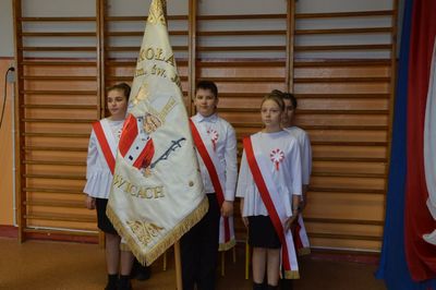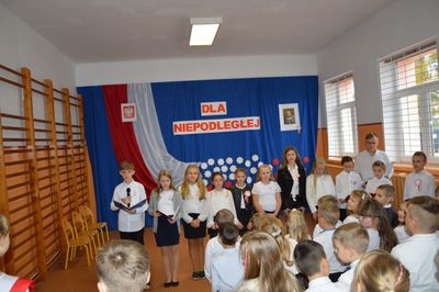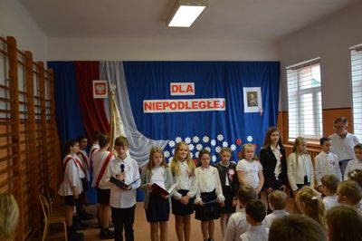 W akademii wystąpili także nasi najmłodsi. Dzieci z oddziału przedszkolnego pod opieką wychowawczyni p. Joanny Ściegiennej zaśpiewały dwie piosenki o naszym pięknym kraju, a Franciszek Janus z aktorskim zacięciem wyrecytował „Katechizm polskiego dziecka”, za co otrzymał gromkie brawa.