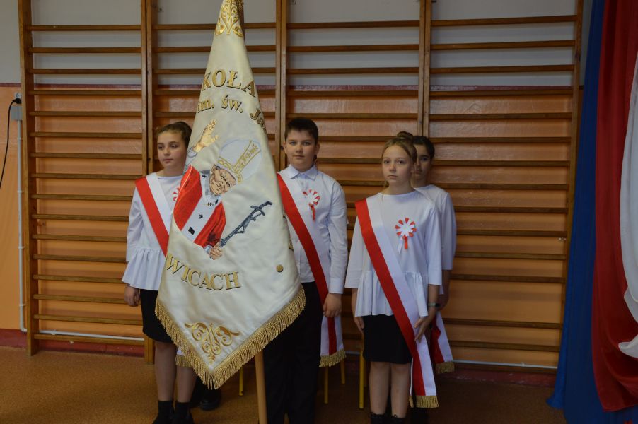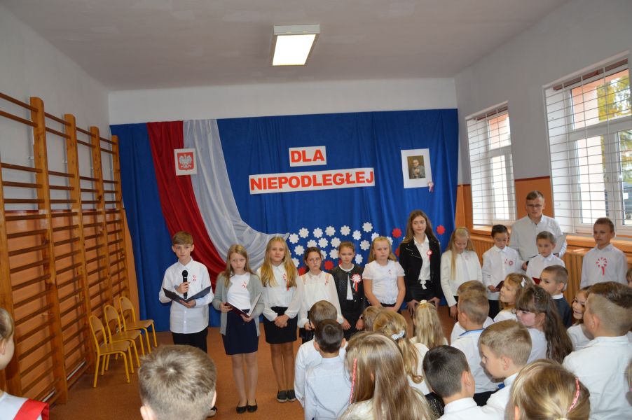 W podniosłym nastroju, w obecności Pocztu Sztandarowego Szkoły Podstawowej im. św. Jana Pawła II w Wilczkowicach, uczniowie zaprezentowali występ, w którym nie zabrakło wierszy i utworów muzycznych o tematyce patriotycznej dla upamiętnienia 104 rocznicy odzyskania przez Polskę niepodległości. Do wspólnego śpiewania „Szarej piechoty” czy popularnej piosenki „Przybyli ułani pod okienko” włączyli się wszyscy zebrani, co było niewątpliwie radosnym, ale także wzruszającym momentem uroczystości. Uczniowie zaprezentowali różne oblicza patriotyzmu, od heroicznej walki o wolność na polu bitwy po cichy patriotyzm w każdym dniu. Jak można było usłyszeć, patriotyzm dzisiaj to szacunek do historii i symboli narodowych. To pielęgnowanie tradycji, kultury i języka. To troska o środowisko naturalne, przestrzeganie prawa, uczciwa praca. To solidarność z innymi ludźmi, pomaganie słabszym. To duma z sukcesów rodaków. To rozwijanie swoich talentów i potencjału.