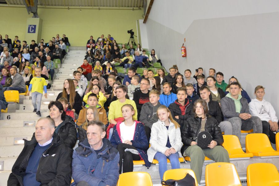 W dniu 15 listopada 2022 r. uczniowie naszej szkoły z klas V -VIII pojechali na mecz piłki ręcznej Łomża Industria Kielce – Azoty Puławy, który rozgrywany był w Hali Legionów w Kielcach. Nasi uczniowie dopingowali drużynę z Kielc oraz z Puław. Byli zachwyceni, że mogą na żywo oglądać swoich idoli. Mecz zakończył się zwycięstwem Łomża Industria Kielce 38 : 24. Później wszyscy uczniowie z naszej szkoły wraz z opiekunami zrobili sobie pamiątkowe zdjęcie z całą drużyną Łomża Industria Kielce. Mecz mogliśmy oglądać na żywo dzięki hojności pana Karola Lesiaka, który ufundował uczniom bilety za które bardzo dziękujemy. Opiekę nad młodzieżą w czasie wyjazdu sprawowali: p. Zbigniew Kowalczyk, p. Barbara Burak, p. Krystyna Kowalczyk, p. Wiesława Zbróg i p. Wiesław Soboń.