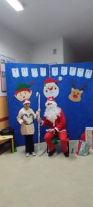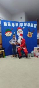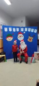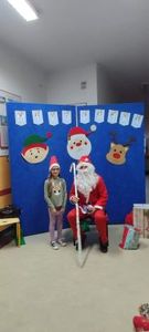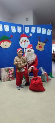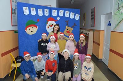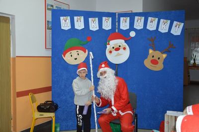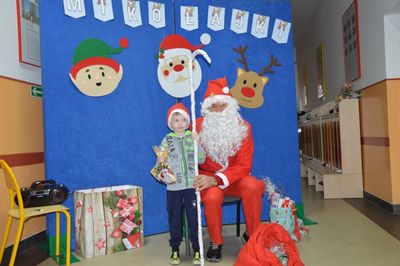 Tego dnia także przed wyjazdem do kina nie zabrakło niespodzianek. Tuż po przyjściu do szkoły, dzieci powitał wesoły dźwięk dzwonka, lecz zupełnie inny niż na codzień. To Święty Mikołaj dawał znać wszem i wobec, że odwiedził dzieci w szkole po to, aby zgodnie z tradycją obdarować ich drobnymi upominkami. Każde dziecko mogło zrobić sobie z nim pamiątkowe zdjęcie. Uczniowie z wdzięczności zaśpiewali Mikołajowi piosenki, a przedszkolaki również zatańczyły przygotowany wcześniej taniec. Mikołajowi tak się podobały występy, że obiecał odwiedzić nas również za rok.