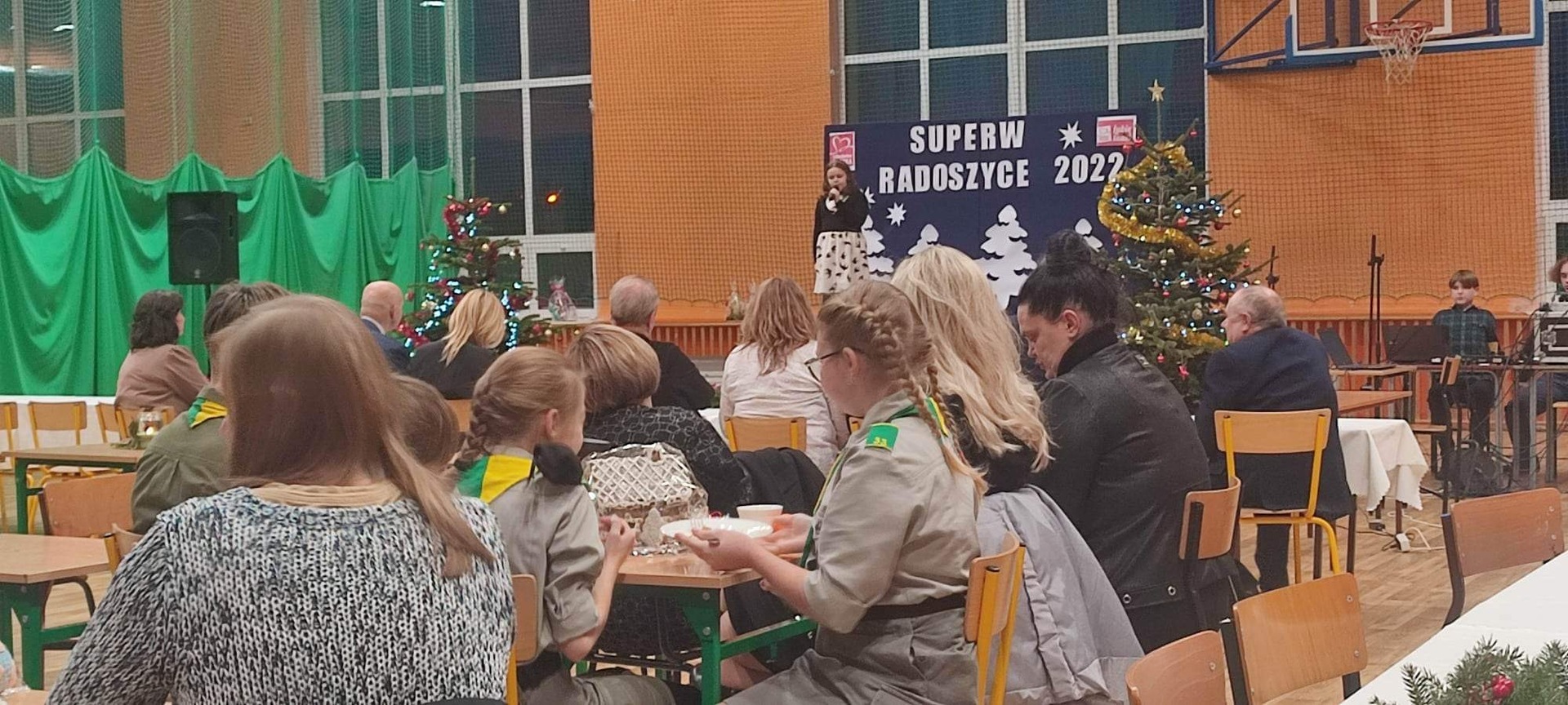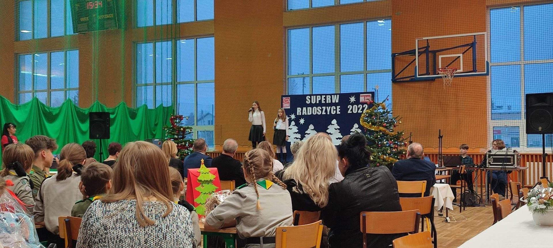 W dniu 11.12.2022r. podczas trwania finału akcji, w weekendzie cudów w hali sportowej w Radoszycach nasza szkoła otrzymała upominek i podziękowanie za udział w XXII edycji Szlachetnej Paczki.