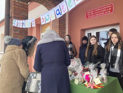 W niedzielę 18 grudnia 2022 r. odbył się kiermasz świąteczny zorganizowany przez nauczycieli i uczniów naszej szkoły. Na stoisku znalazły się piękne stroiki, ozdoby choinkowe, świece oraz kartki świąteczne. Kiermasz cieszył się dużym zainteresowaniem. Wszystkie dekoracje bożonarodzeniowe zostały sprzedane, a dochód w kwocie 780 zł przekazany został na konto Rady Rodziców SP. w Wilczkowicach.