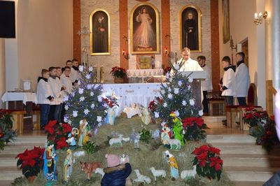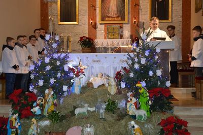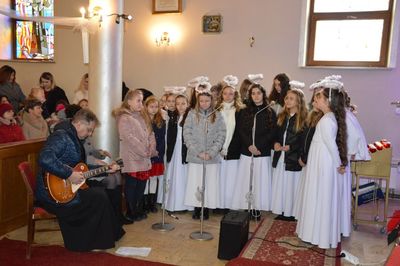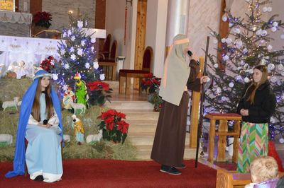 W dniu 08. 01. 2023 roku uczniowie naszej szkoły wystąpili w kościele parafialnym pw. św. Maksymiliana Kolbego i św. Faustyny Kowalskiej w Wilczkowicach. Po trzyletniej przerwie spowodowanej pandemią, dzieci, które ksiądz proboszcz Przemysław Ilnicki ponownie zaprosił do kościoła, mogły zaprezentować jasełka bożonarodzeniowe. Przedstawienie zgromadziło liczne grono parafian oraz gości w Święto Chrztu Pańskiego. Zebrani mogli obejrzeć historię okoliczności narodzenia Pana Jezusa. W spektaklu pojawili się: Maryja z Józefem, Trzej Królowie, pastuszkowie, aniołowie, dzieci, Herod ze swoją świtą. Hołd maleńkiemu Jezuskowi oddały również przedszkolaki poprzez piękne śpiewanie pastorałki i jeszcze piękniejszy taniec. Ksiądz proboszcz uświetnił występ grą na gitarze, a schola śpiewaniem kolęd i pastorałek. Na zakończenie ksiądz proboszcz podziękował za wspólne, udane spotkanie i kolędowanie. Wszyscy zebrani nagrodzili młodych artystów głośnymi brawami. Bardzo dziękujemy Rodzicom za dowiezienie dzieci. Uczniów do występu przygotowały Krystyna Kowalczyk, Joanna Ściegienna i Barbara Janus.