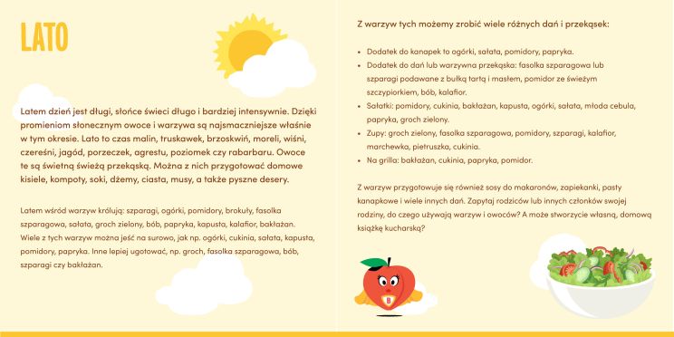 Sztandarowe 5 porcji owoców i warzyw to dla dzieci absolutne minimum. Różnorodna dieta, a w niej warzywa i owoce są najlepszym źródłem witamin i minerałów. Zawierają całe bogactwo składników: witaminy C, E i kompleks witamin z grupy B, dużą ilość siarki, manganu, molibdenu, jodu, kobaltu, selenu i chromu, a także żelazo, cynk i potas. Naszymi największymi sprzymierzeńcami w układaniu jadłospisu dla dzieci powinny być sezonowe, lokalnie dostępne owoce i warzywa z zaufanych źródeł.