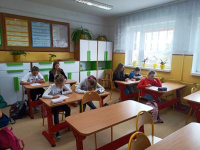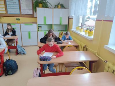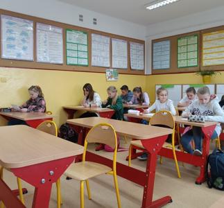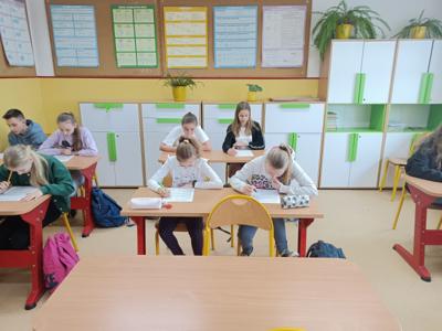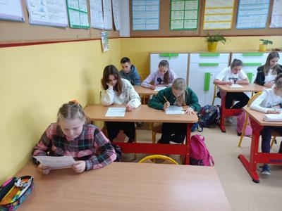 Uczniowie klas IV - VIII wzięli udział w szkolnym konkursie matematycznym, w którym na początku dowiedzieli się o znaczeniu liczby Pi, a następnie zmierzyli się z wieloma zadaniami matematycznymi w postaci testu na poziomie swojej klasy.
