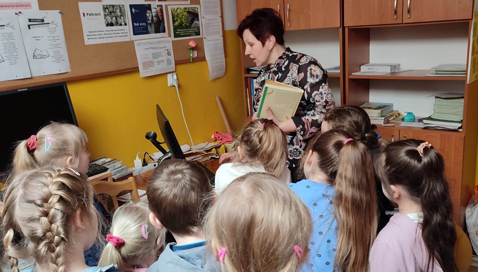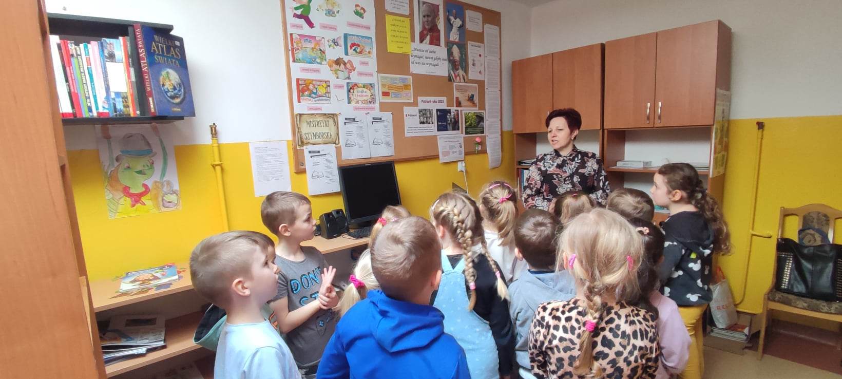 Wprowadzenie dziecka w świat literatury już od najmłodszych lat jest ważnym elementem wychowania przez sztukę, a także jednym z ważnych celów umiejętnosci spostrzegania oraz pomaga w rozwoju emocjonalnym i intelektualnym od najmłodszych lat. U naszych milusińskich z oddziału przedszkolnego kształtujemy nawyki stałego obcowania z książką. Mamy świadomość, że wiek przedszkolny jest idealnym okresem w rozwoju dziecka, dlatego staramy się zainteresować go literaturą, która pobudzi jego wyobraźnię, wzbogaci mowę o nowe pojęcia, wprowadzi w świat baśni, nauczy zachowań w różnych sytuacjach życiowych. 17 marca 2023 roku dzieci z oddziału przedszkolnego pod opieką wychowawcy p.Joanny Ściegiennej i pomocy nauczyciela: p. Doroty Leśnikowskiej odwiedziły szkolną bibliotekę. Przedszkolaki z wielką radością zapoznały się z magicznym dla nich miejscem. Była to pierwsza wizyta wśród tylu książek. Z tematem spotkania i z biblioteką zapoznała maluchy bibliotekarka p. Wiesława Zbróg, która opowiadała im o tym magicznym miejscu. Dzieci z wielkim zainteresowaniem oglądały książki znajdujące się na półkach, ale szczególnie zainteresował ich dział dla najmłodszych. Przedszkolaki dowiedziały się, co należy zrobić, aby stać się czytelnikiem biblioteki oraz jak należy się w niej zachowywać. Spotkanie odbyło się w serdecznej i pełnej miłych wrażeń atmosferze. Dla wielu była to pierwsza, ale na pewno nie ostatnia wizyta w bibliotece.