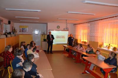Spotkanie odbyło się w dwóch grupach : młodszej (klasy I-III) i starszej (klasy IV-VIII). Uczniowie dowiedzieli się, czym są przemoc i agresja oraz jak mają postępować, gdy jesteśmy ich świadkami. Policjantka przypomniała wszystkim o bezwzględnym stosowaniu się do zasad i norm regulujących funkcjonowanie jednostki w społeczeństwie. Ostrzegła także, iż nieprzestrzeganie prawa może doprowadzić do poważnych konsekwencji, np. nadzoru kuratora bądź skierowania sprawy do sądu rodzinnego. Uczniowie z zaciekawieniem wysłuchali jej słów, a następnie zadawali pytania, na które funkcjonariuszka udzielała wyczerpujących odpowiedzi.