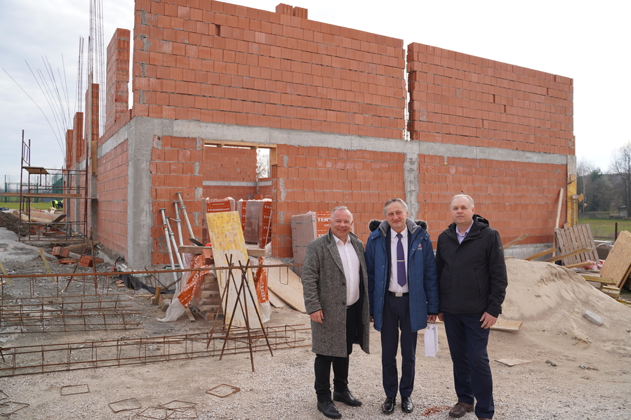 Wśród tematów poruszanych podczas rozmowy wojewody z włodarzem gminy Radoszyce oraz dyrektorem naszej placówki była miedzy innymi budowa sali gimnastycznej, która powstaje obok szkoły dzięki środkom z Rządowego Funduszu Polski Ład.